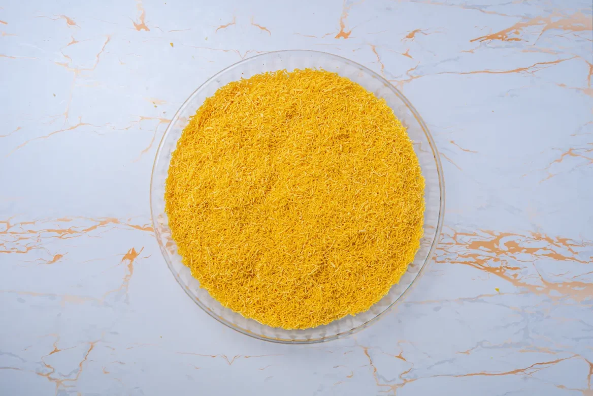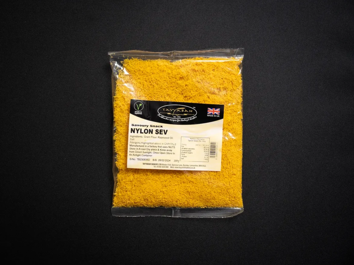 Discover the delicate and airy crunch of our Nylon Sev, a popular Indian snack known for its fine, thread-like appearance. Made from seasoned gram flour, this snack is incredibly light and crispy, offering a subtle taste that makes it a versatile addition to a variety of dishes. Enjoy it as a topping on chaats, in a mix with other snacks, or simply by itself for a light, savoury nibble.