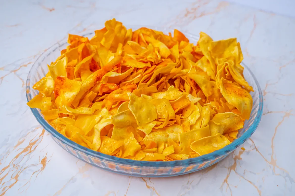 Indulge in the zesty crunch of our Papdi Sanchar, a vibrant take on the traditional Papdi snack. This version is enhanced with a tangy and slightly spicy seasoning, adding an exciting flavour profile to the crispy, fried strips. Made from gram flour, these thin, crunchy delights are perfect for those who enjoy a snack with a bit of a kick. Ideal for sharing at gatherings or enjoying solo as a lively accompaniment to your tea.”
