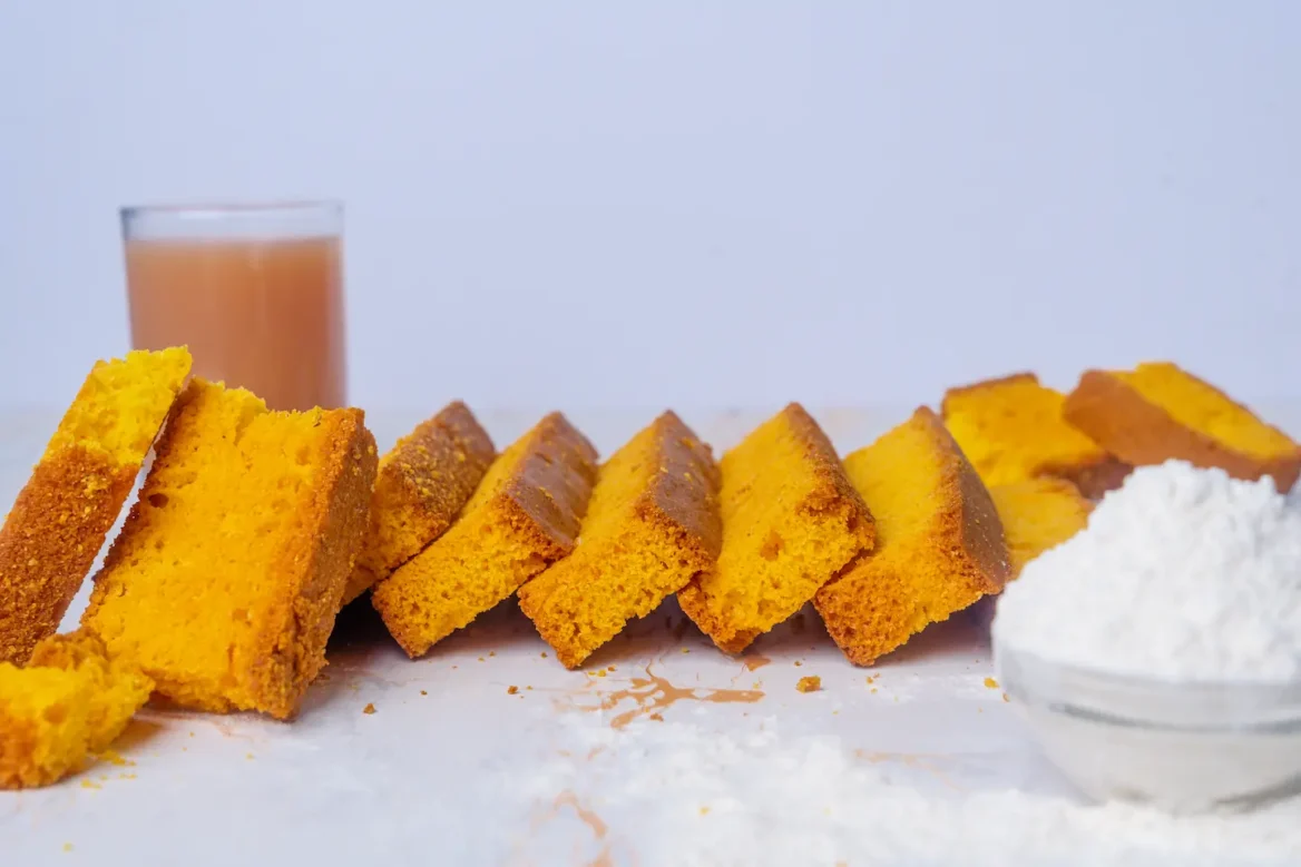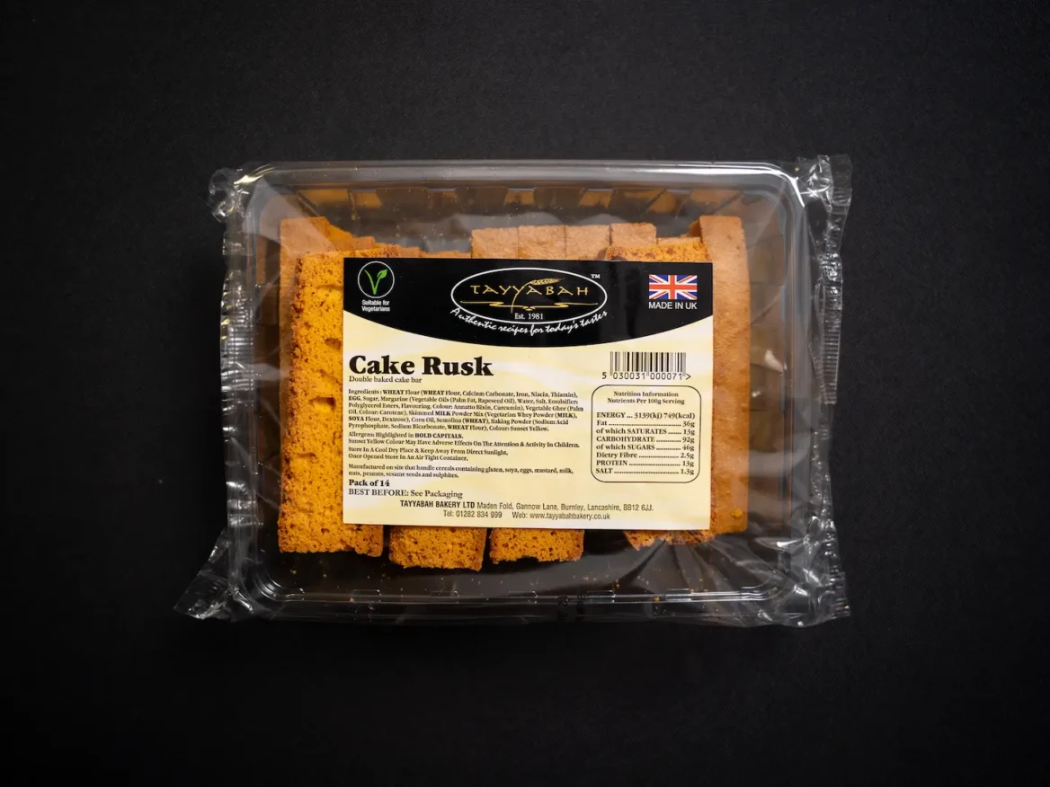 Enjoy our classic Cake Rusk, a twice-baked cake bar that captures the essence of homely baking traditions. Each rusk is a slice of sponge cake carefully baked until crisp, offering a dry, crunchy texture that makes for an ideal dipper in your tea or coffee. The gentle sweetness and satisfying snap of these rusks make them a delightful treat.