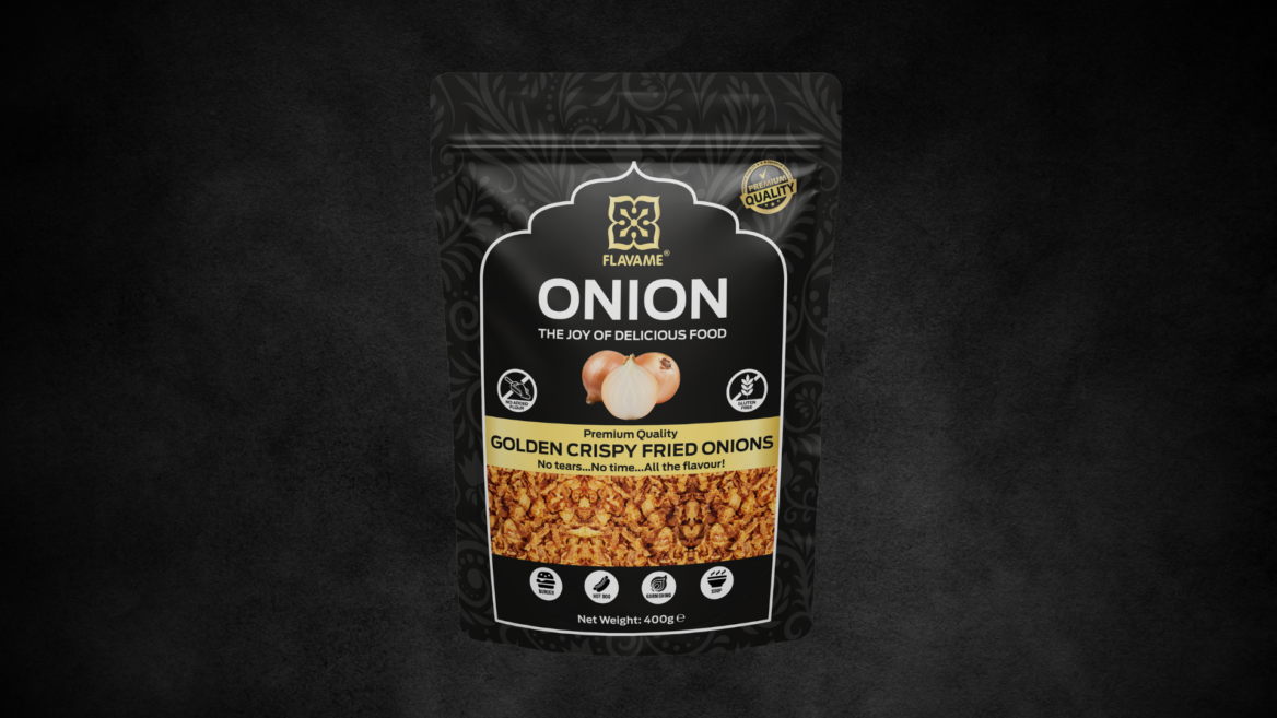 Flavame Golden Crispy Fried Onions – the ultimate way to add irresistible crunch and rich, savoury depth to your favourite dishes. Made from 100% natural onions with no added flour, these golden flakes deliver pure, authentic flavour with every bite.